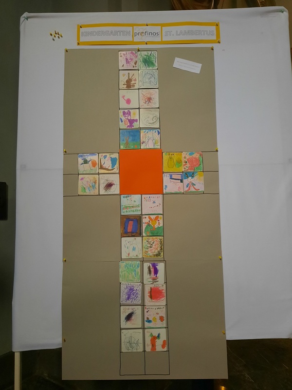 An Gründonnerstag startete dann unser Schatzzeit, bei der wir uns mit dem Koffer auf dem Weg machten, um noch mehr aus dem Leben unseres Freundes – Jesus- zu erfahren von Palmsonntag bis zum bevorstehenden Osterfest. Leider war das Wetter so unbeständig, dass wir in die Kirche ausweichen musste, was anders, aber nicht weniger reizvoll, war.