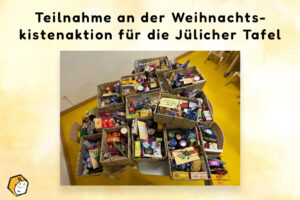 In der Vorweihnachtszeit möchten wir gemeinsam mit den Kindern ein Zeichen der Nächstenliebe setzen! Wir beteiligen uns an der Weihnachtskisten-Aktion der Jülicher Tafel, um bedürftigen Familien in Jülich eine besondere Freude zu bereiten – mit